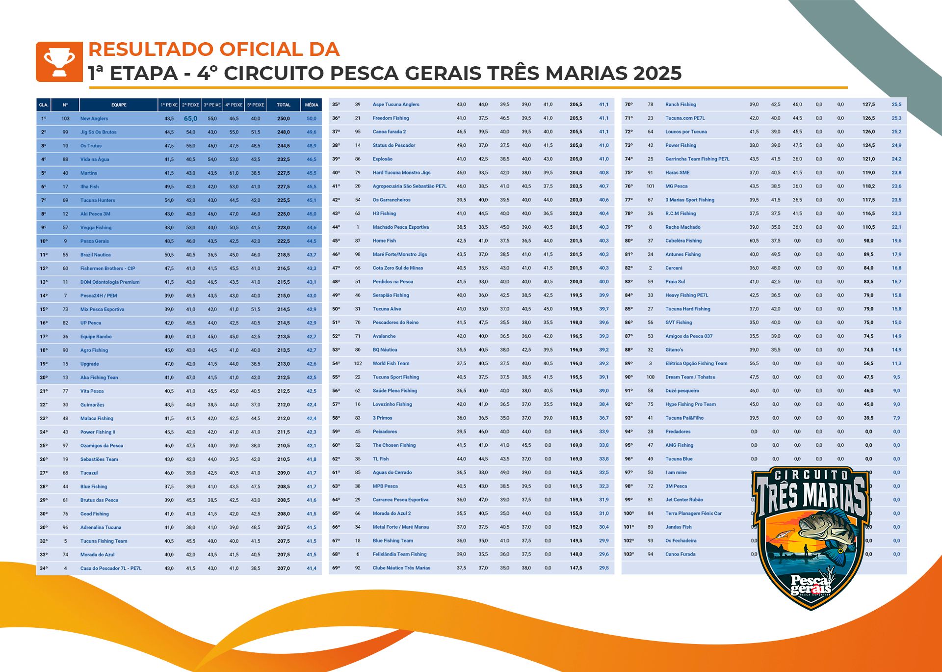 1ª Etapa Circuito Pesca Gerais Três Marias 2025